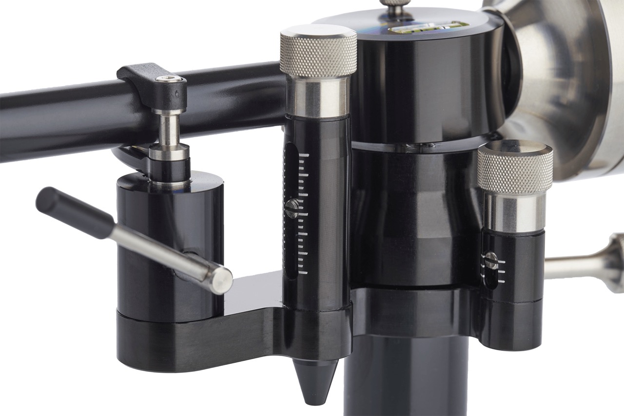 Hochpräzise Justierinstrumente für die exakte Korrelation von Nadel und Rille. Eigengefertigte Rändelschrauben mit perfekter haptischer Rückmeldung übertragen filigranste Bewegungen direkt an die Feingewinde.
