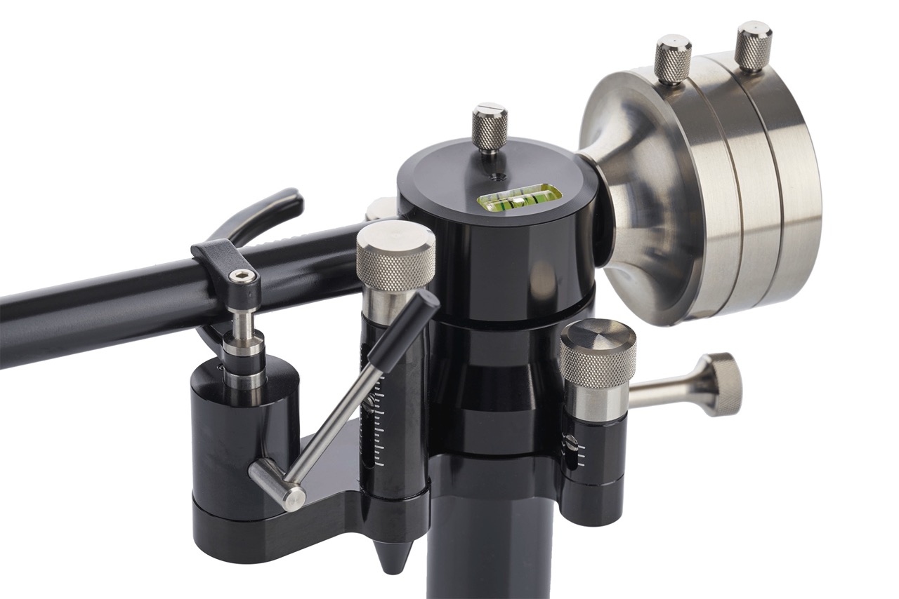 Gegengewicht aus Edelstahl für perfekte Gewichtsjustierung. Signifikant höhere Dynamik und Direktheit der Nadel durch optimierte Kraft-/ Masseverteilung im gesamten Tonarmsystem.
