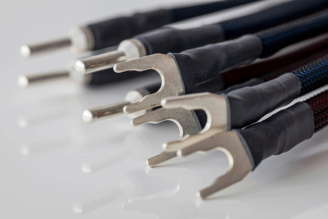 • Anschlüsse: Hohlbananas, versilberte Gabelkabelschuhe oder Audioplan-Bananen aus Reinkupfer