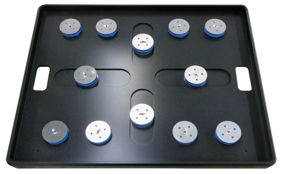 erfolgt durch diverse Multilayer Silikon-/Aluminium-Dämpferpucks, welche die