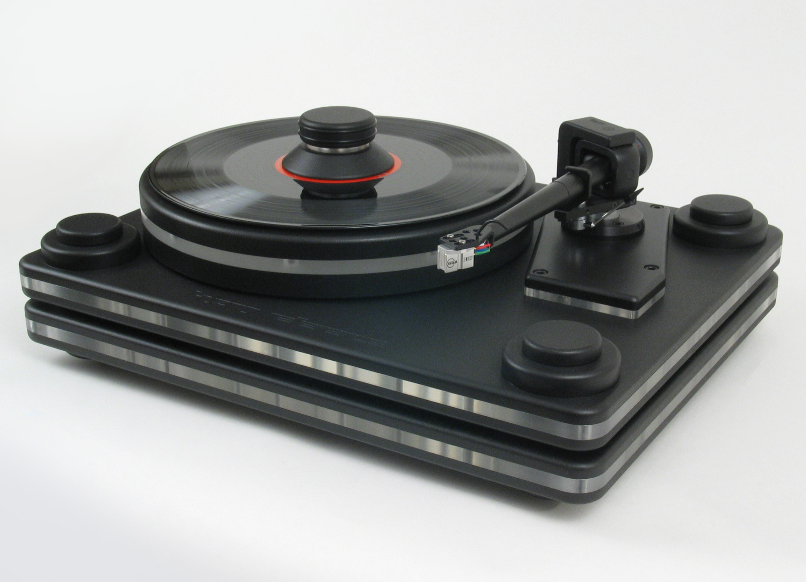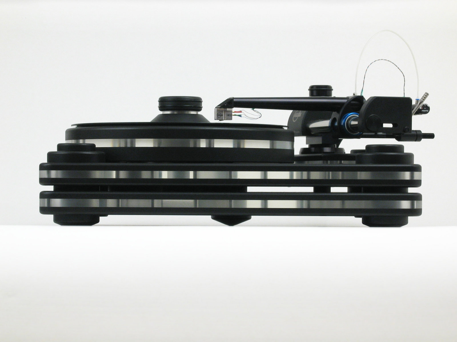 Eine absolute Besonderheit und selten gesehen bei Masselaufwerken ist das integrierte Subchassis. Ähnlich wie der Plattenteller bestehen auch die zwei Chassisplatten aus einem massiven und resonanzarmen Sandwich aus Aluminium und Acryl. Über große Federn, die in Silikonöl gelagert sind, ergibt sich eine Tiefenresonanzfrequenz von 2,2 Herz. Damit ist der Plattenteller und die empfindliche Abtastung sehr effektiv von Störungen am Aufstellort isoliert.