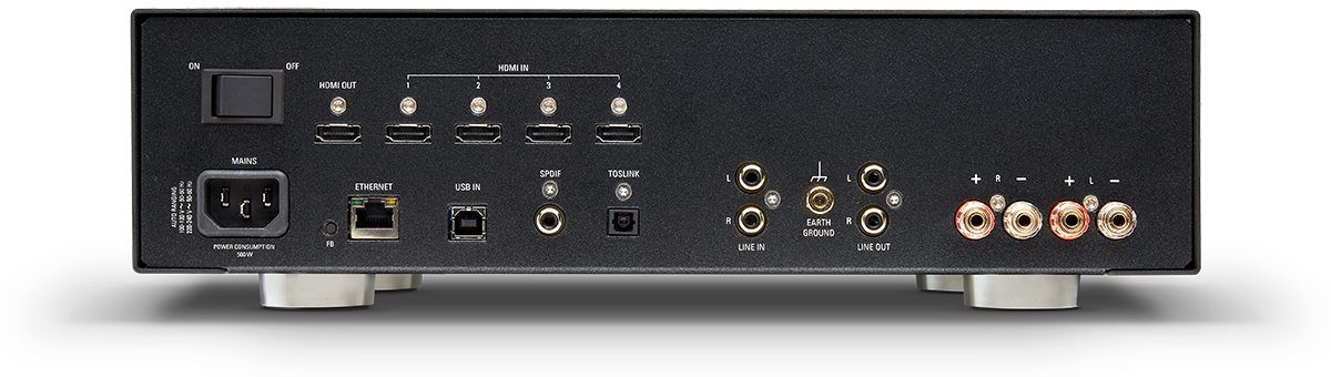 Die völlig neuen Class-D-Endstufen arbeiten hocheffizient und haben geringere Rausch-und Verzerrungswerte als die bisherigen Chakra-Endstufen. Mit 2 x 100 Watt steht genügend Leistung für die meisten Lautsprecher zur Verfügung.