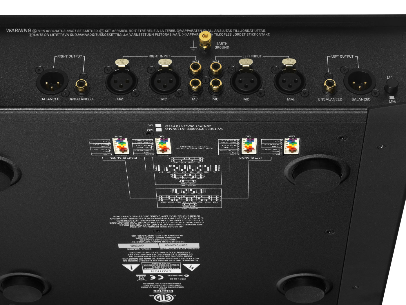 Alle Eingänge wie auch die Ausgänge sind jeweils in Cinch und XLR Ausführung vorhanden. Damit ist die Uphorik eine der ganz wenigen Phonostufen auf dem Markt, an die man den Tonabnehmer echt vollsymmetrisch anschließen kann.Moving Magnet MM und Moving Coil MC