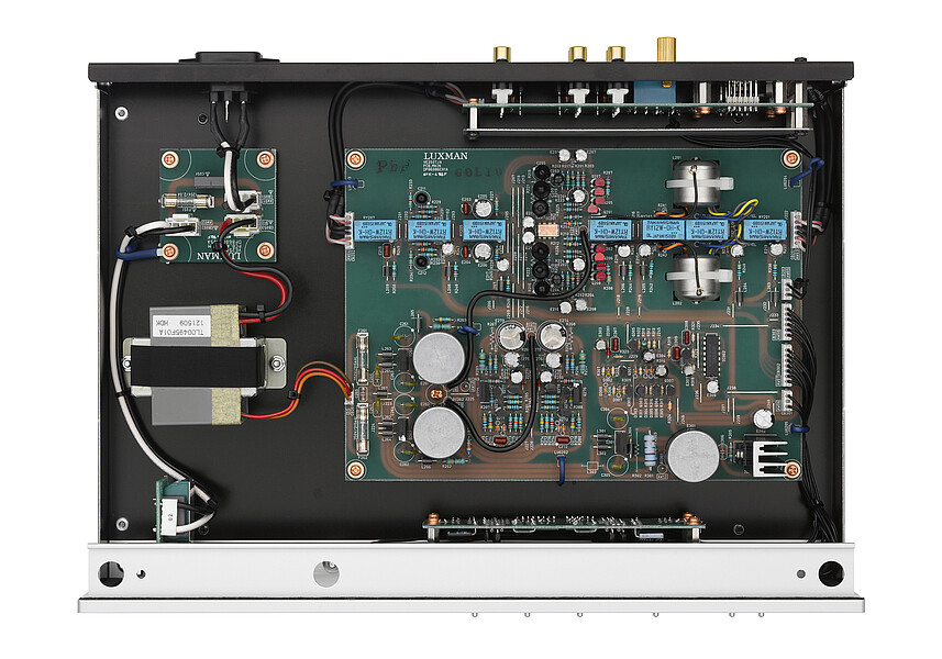 Luxman geht keine Kompromisse ein, wenn es um die Signalreinheit geht: Die diskret aufgebaute Spannungsregelung sorgt für eine absolut stabile Stromversorgung, während speziell entwickelte Blockkondensatoren mit hoher Kapazität für eine reibungslose und detailreiche Musikwiedergabe stehen. Die präzise NF-Equalizer-Schaltung mit selektierten JFETs reduziert Rauschen auf ein Minimum, und der aufwendig gestaltete Platinenaufbau mit Luxmans charakteristischen weichen Kupferbahnen minimiert Signalverluste für eine unverfälschte, lebendige Wiedergabe.