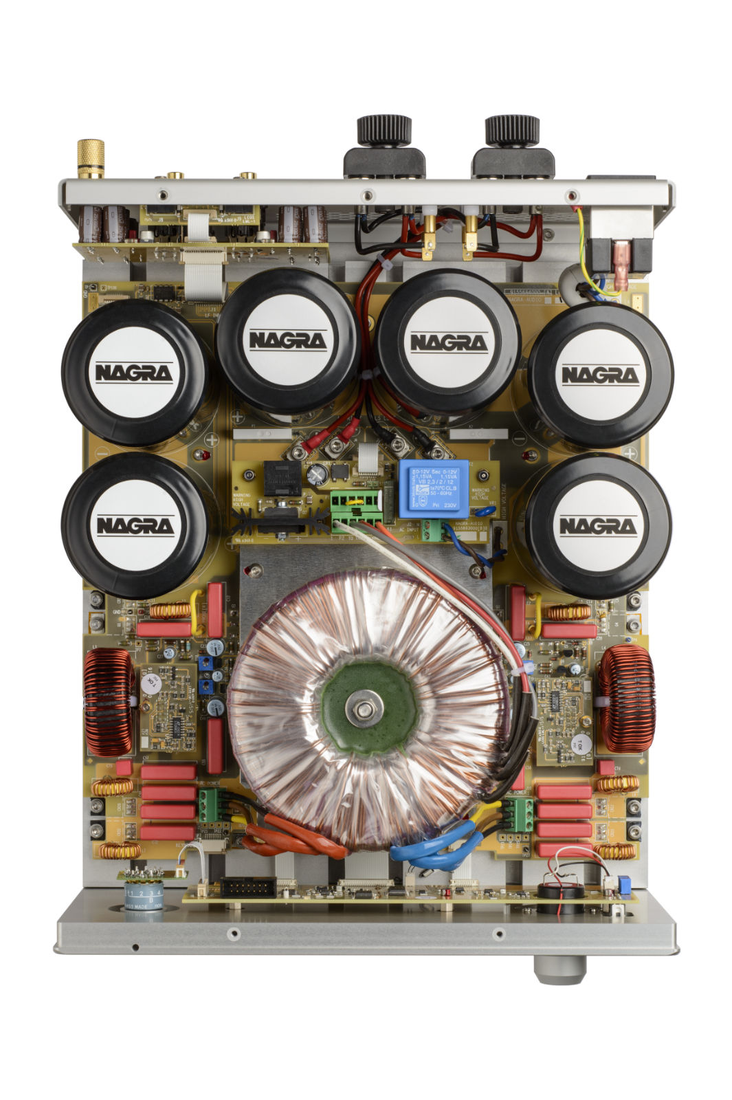 Wie bei vielen audiophilen Verstärkern ist auch hier das Netzteil ein wichtiger Garant für außergewöhnlichen Klang, der Nagra CLASSIC AMP wartet hier mit einer Besonderheit auf. Das Netzteil besteht aus zwei Teilen, einem klassischen Netzteil mit großem Ringkern-Transformator und den dazugehörigen hochkapazitiven Siebkondensatoren sowie einem nachgeschaltetem Schaltnetzteil für die ultimative Stabilität. Die Wirkung entspricht der eines aufwändig voll geregelten Netzteils. Dadurch gewinnt der Klang an Kraft, Tiefe und Ausdruck.