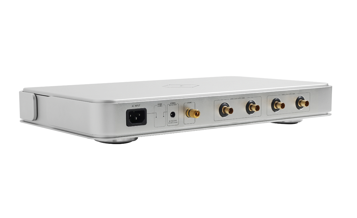 "Die Clock GX wartet mit einigen konzeptionellen Besonderheiten auf, die sie von anderen Clocks unterscheidet. Während die meisten der auf dem Markt erhältlichen Clocks, die mehrere Ausgänge anbieten, ein einziges Clock-Modul besitzen und dessen Signal an mehrere Ausgänge verteilen, kommen bei der GX vier separate Clock-Module mit komplett eigener Schaltung zum Einsatz. Damit sollen potenzielle Signalstörungen und wechselseitige Beeinflussungen vermieden werden. Durch die unabhängigen Clock-Module stehen auch unterschiedliche Taktfrequenzen zur Verfügung, nämlich zwei Ausgänge mit 10 Megahertz und zwei Ausgänge mit 25 Megahertz, natürlich über vergoldete BNC-Buchsen."