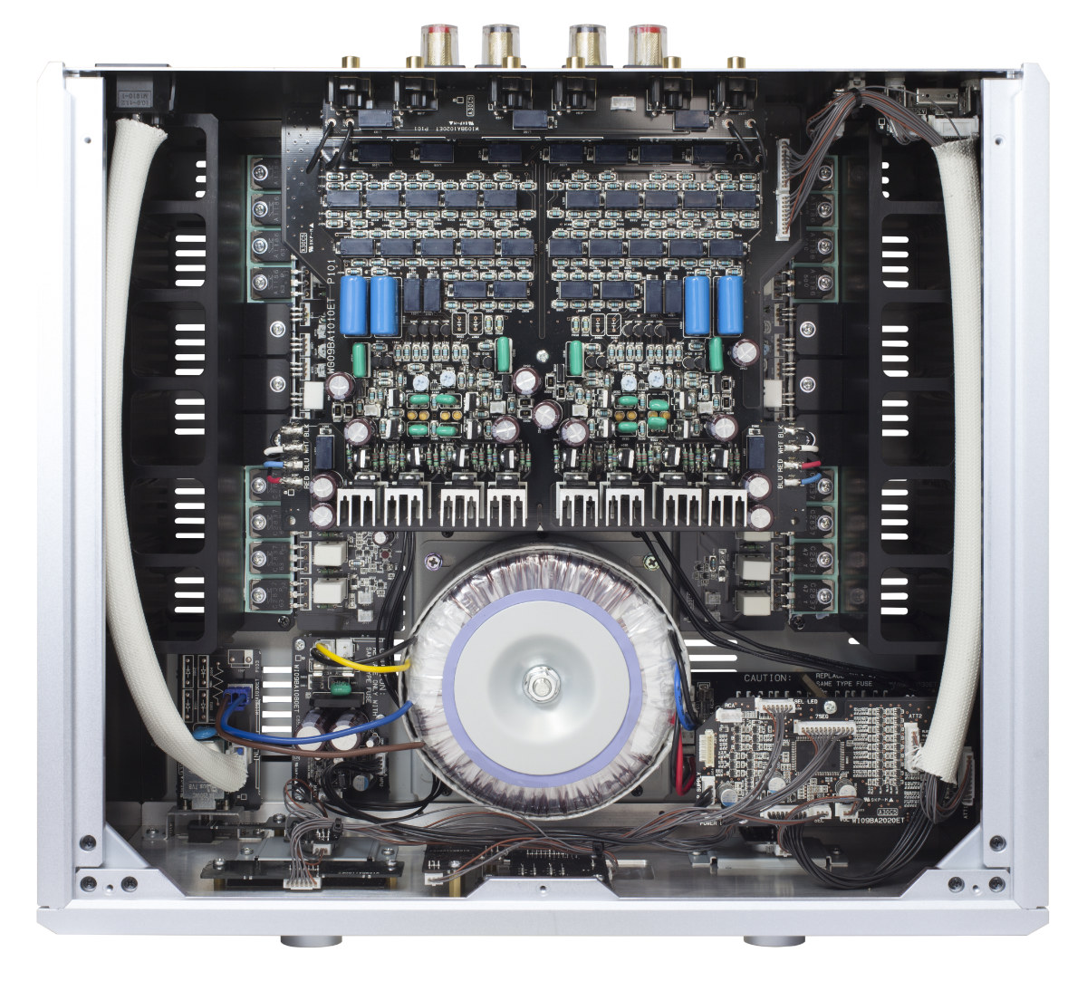 Auch bei der Leiterplatte scheut Soulnote keine Mühe. Die aufwändig entwickelte Hauptplatine, die Basis der Soulnote Schaltungstechnik, besticht durch 70 Mikrometer dicke Kupferfolie. Die Eliminierung von Induktivitätskomponenten bei den Leiterbahnen führt zu hervorragenden Frequenzwerten und Stabilität. Enorme Stromkapazitäten Das Netzteil des A-2 basiert auf einem bifilar gewickelten 600 VA Ringkerntransformator – dem leistungsstärksten in der Soulnote-Geschichte. Die eingesetzten Kondensatoren für die Siebung im Netzteil wurden speziell für Soulnote entwickelt und auf maximale Klangperformance optimiert. Soulnote setzt auf eine Parallelschaltung mehrerer Kondensatoren mit geringer Kapazität, was eine bessere Kontrolle und Optimierung der Frequenzcharakteristik ermöglicht.