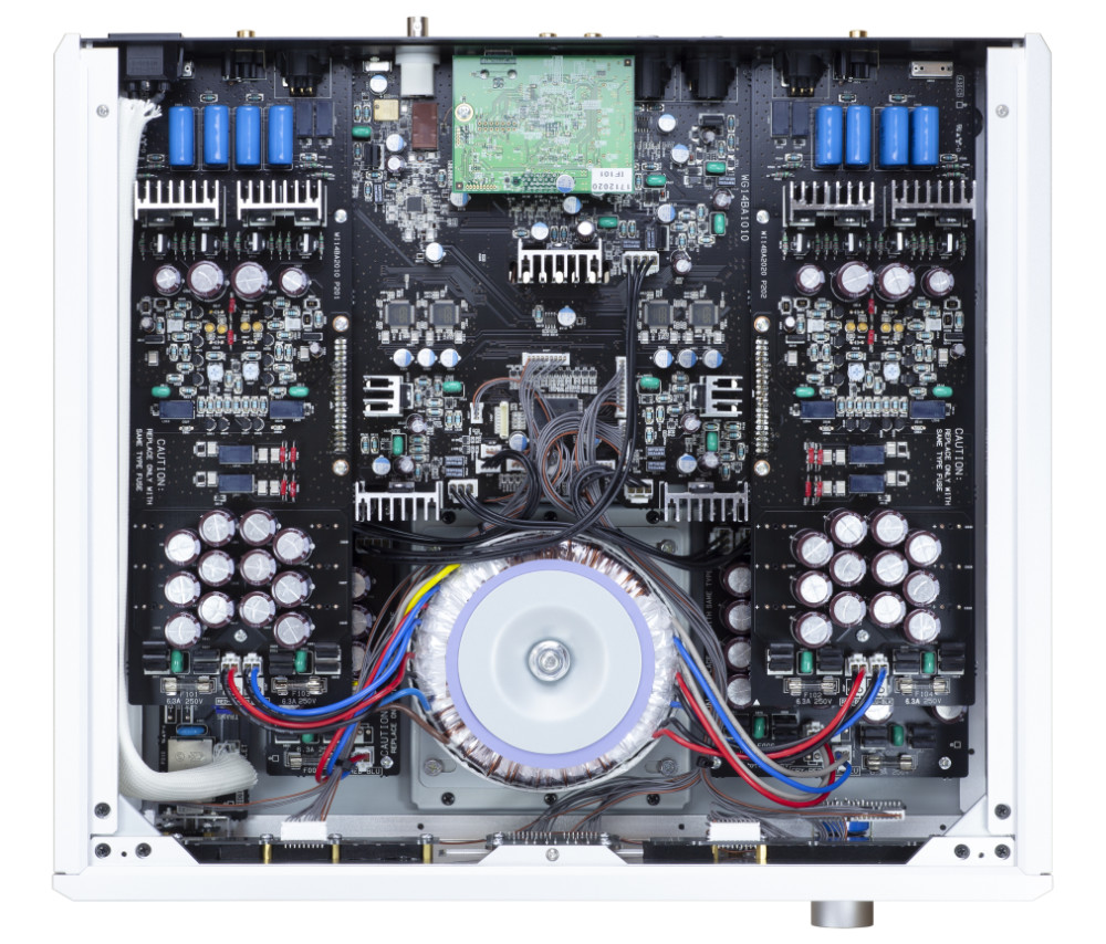 Die diskreten, vollsymmetrischen, Non-NFB-Differenzialverstärker von SOULNOTE sind in einer Dual-Mono-Konstruktion angeordnet, die jeden Kanal, einschließlich des Gleichrichters der Stromversorgung, vollständig isoliert. Die Verbindungskabel für die Tonsignale und die Stromversorgungen wurden eliminiert. Die Verkabelung vom Transformator wurde ebenfalls verkürzt, da dies eine der Hauptursachen für Stromschleifen ist.
