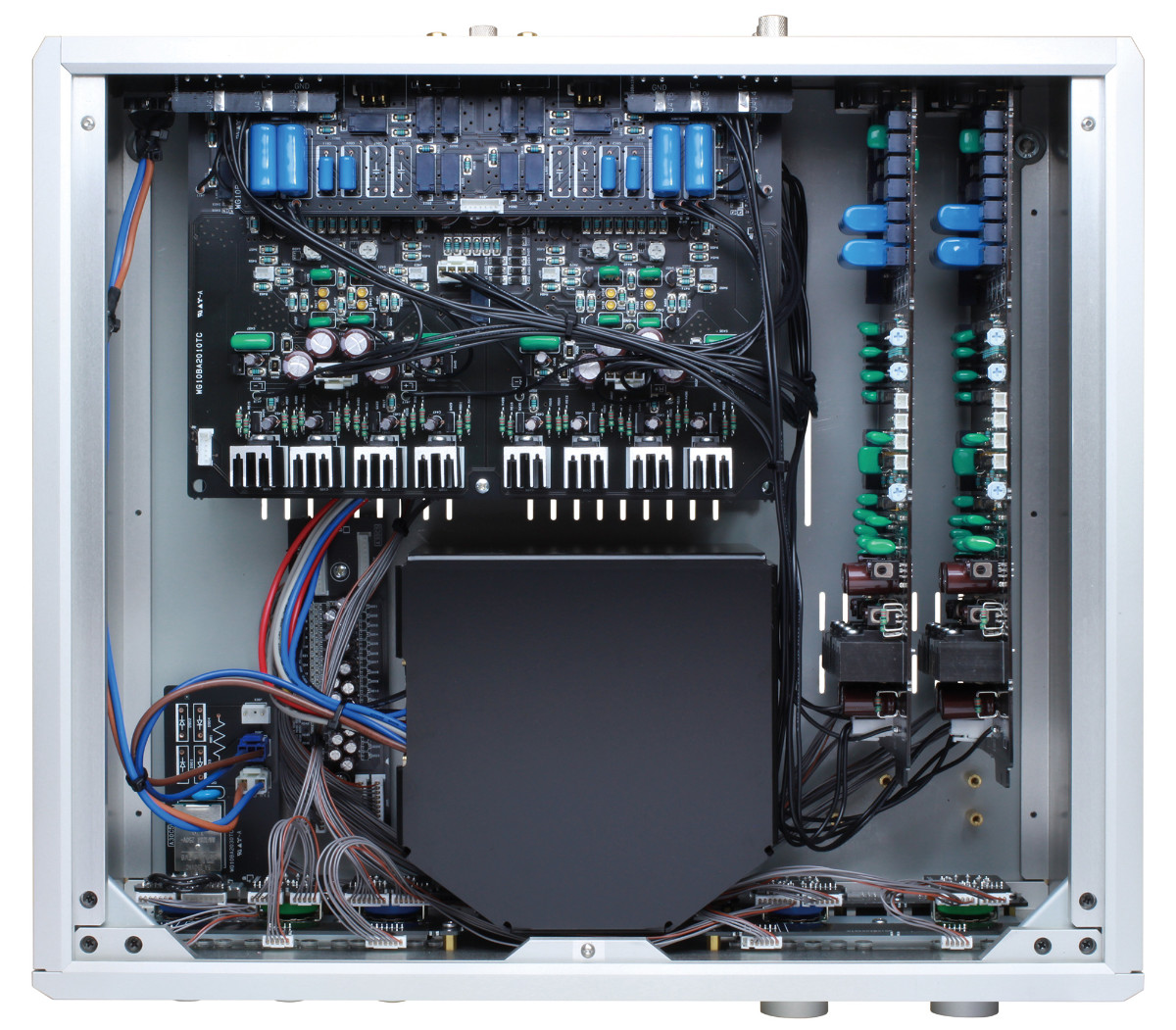 Alle Arten von Steckverbindern im Signalsystem wurden eliminiert, um eine vollständig kontaktlose Konstruktion zu erreichen. Eine dreidimensionale Leiterplattenbaugruppe sorgt für eine niedrigere Impedanz in den Stromversorgungsleitungen und in der Verdrahtung, die auf Sternverdrahtung basiert. Diese besondere Konstruktions- und Verdrahtungstechnik verbessert das Signal-Rausch-Verhältnis, wodurch das Nutzsignal – also die Musik – stärker hervortritt und weniger durch störendes Rauschen beeinträchtigt wird. Das Resultat ist eine klare, reine Klangqualität.