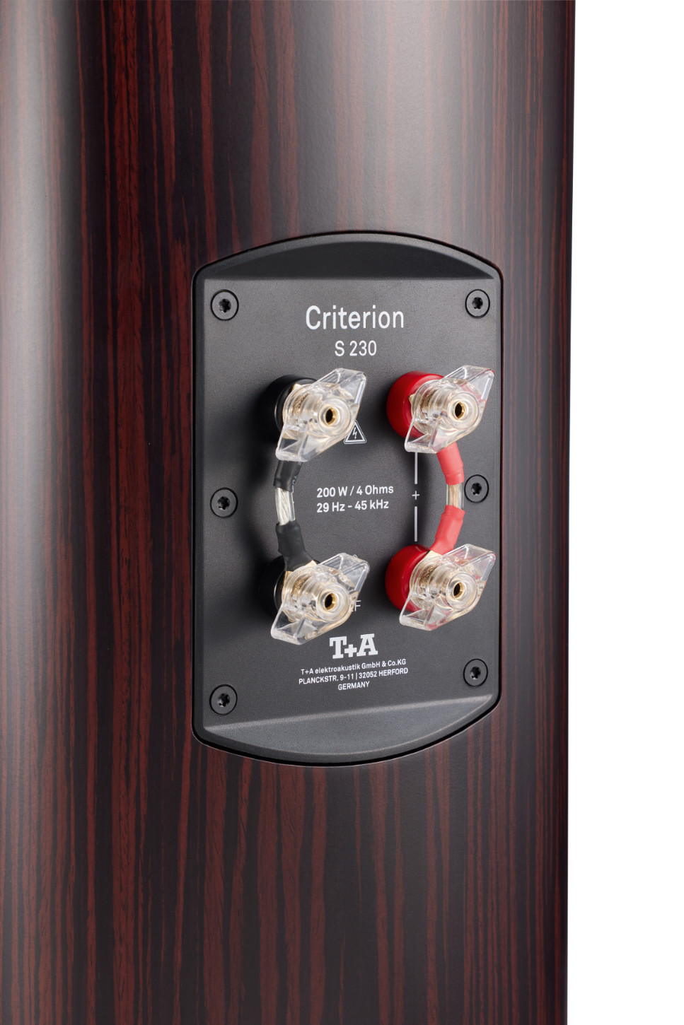 T+A Lautsprecher sollen die ursprüngliche Vision der Künstler durch präzise Signalübertragung von Verstärkern wiedergeben. Ein Schlüsselaspekt hierfür sind die Anschlussklemmen: Minderwertiges Material kann Klirr verursachen und die Klangqualität beeinträchtigen. Deshalb verwendet T+A ausschließlich hochwertiges, nickelfrei hartvergoldetes Messing für die Anschlussklemmen, um eine klare Signalübertragung zu Frequenzweichen und Chassis zu gewährleisten. Zudem bieten die Criterion Lautsprecher separate Anschlussklemmen für Bass- und Mittelhochtonbereiche, die direkt mit den jeweiligen Frequenzweichensektionen verbunden sind, ideal für Bi-Wiring oder Bi-Amping.