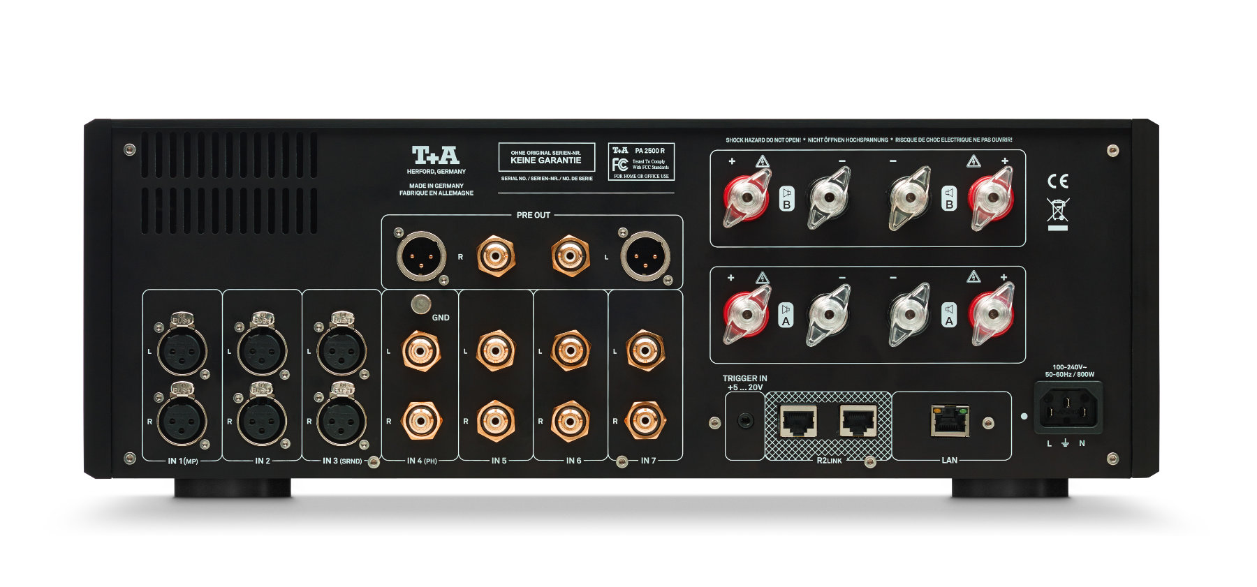 Der T+A PA 2500 R baut schaltungstechnisch auf den PA 2000 R auf. Allerdings verfügt er über einen doppelt so großen Kühlkörper und zwei Hochleistungsnetzteile. Selbst extrem phasen- und impedanzkritische Lautsprecher können so mühelos kontrolliert werden.