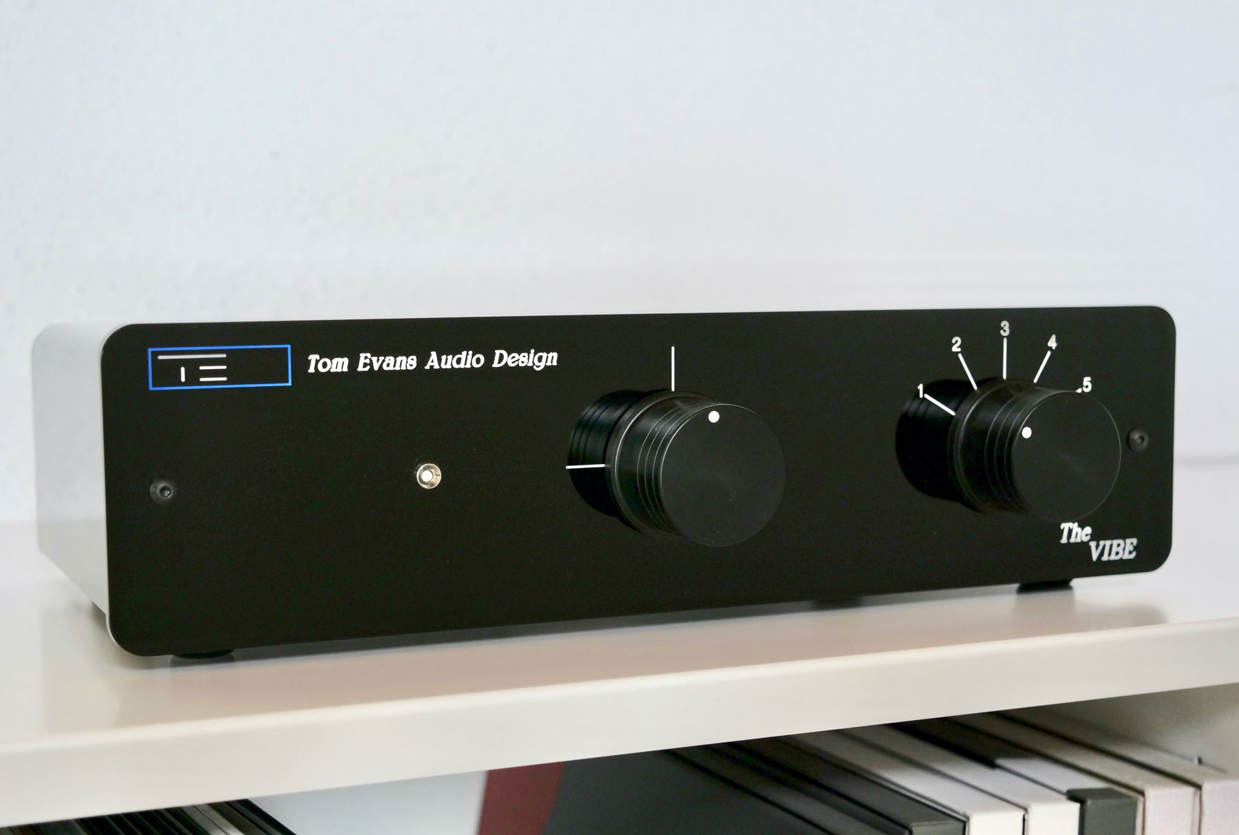Ein kleines, unscheinbares Acrylgehäuse, 5 Line Eingänge, 2 Hauptausgänge, 1 Tape Ausgang, ein Eingangswahlschalter, ein Lautstärkesteller und ein Netzteil – das ist die Line Vorstufe von Tom Evans. Der „Vibe“ ist reduziert auf das absolut Notwendige, jedoch mit einer Klang- und Bauteilequalität, die weit über die Preisklasse hinausreicht und viele, auch sehr renommierte Produkte schlicht in den Schatten stellt.